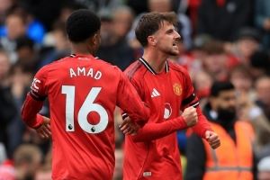 曼联首发:拉门斯;约罗、马奎尔、德里赫特;阿玛德、卡塞米罗、B费、卢克-肖;姆伯莫、库尼亚;舍什科。